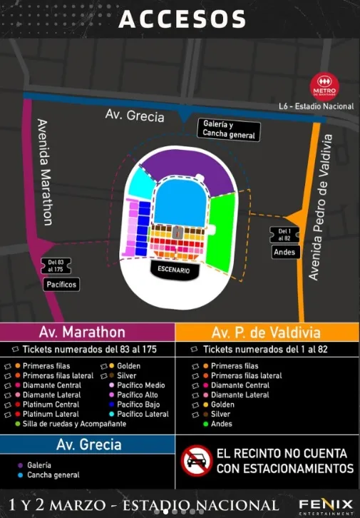 Asimismo, la producción llama a organizar la llegada de los asistentes con anticipación, ya que no habrá disponibilidad de estacionamientos y algunas calles estarán cerradas. Para facilitar el ingreso debes revisar tu ticket con antelación para acceder por la calle indicada.