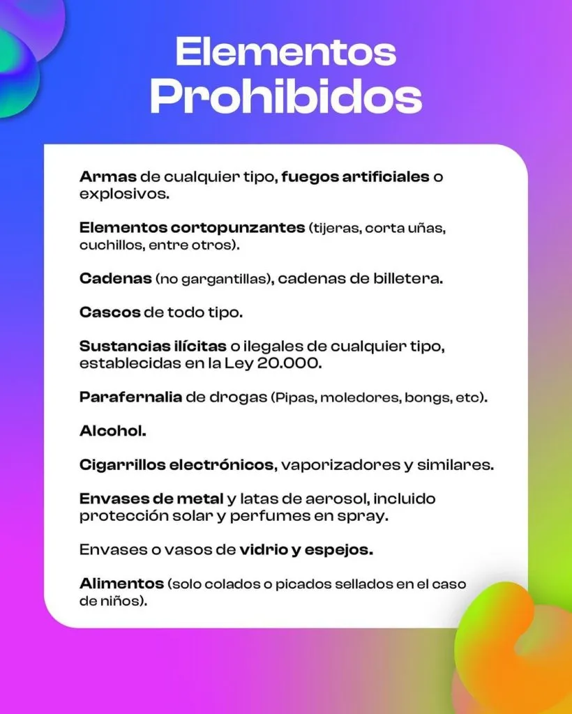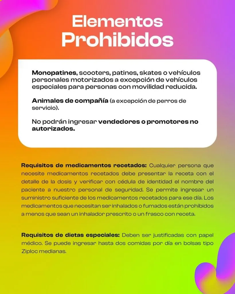 Revisa a continuación en la imagen los elementos permitidos y los prohibidos en el Fauna Primavera 2023: