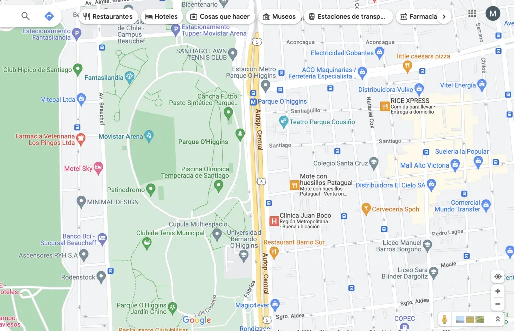 El Movistar Arena queda en pleno Parque O’Higgins de Santiago, y puedes llegar en Metro en la estación del mismo nombre, Parque O’Higgins de la Línea 2.