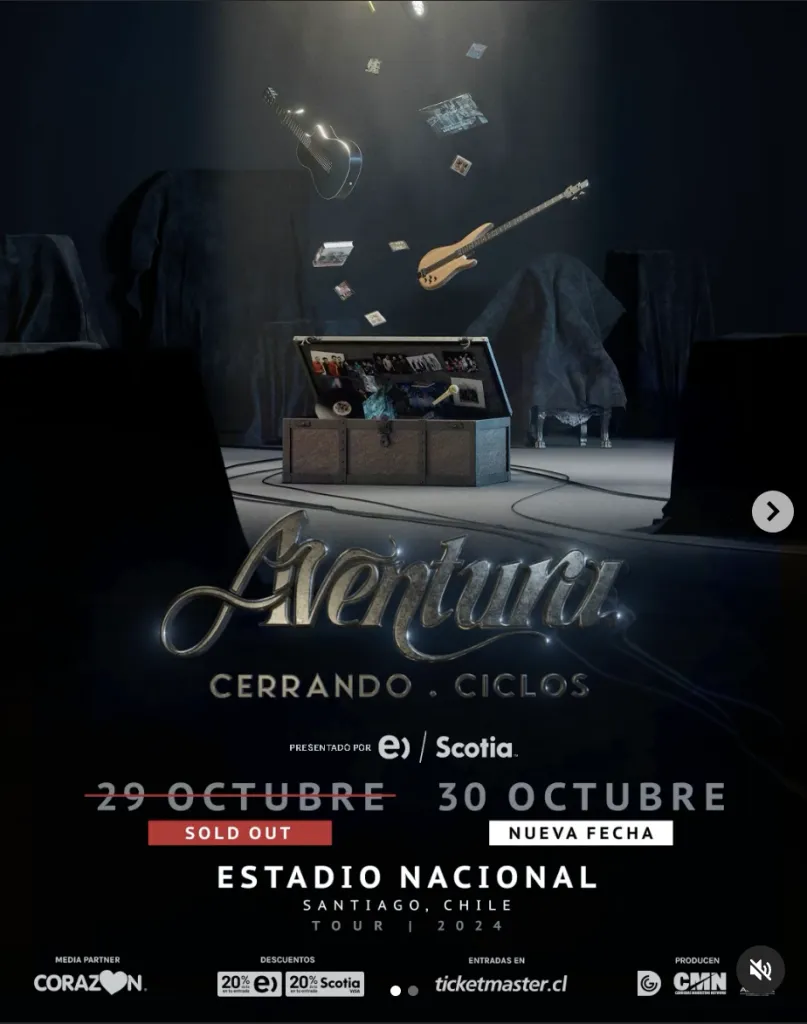 Aventura vuelve a nuestro país con su tour “Cerrando Ciclos” y se presentará el próximo 29 de octubre en el Estadio Nacional ante sus más grandes fanáticos.