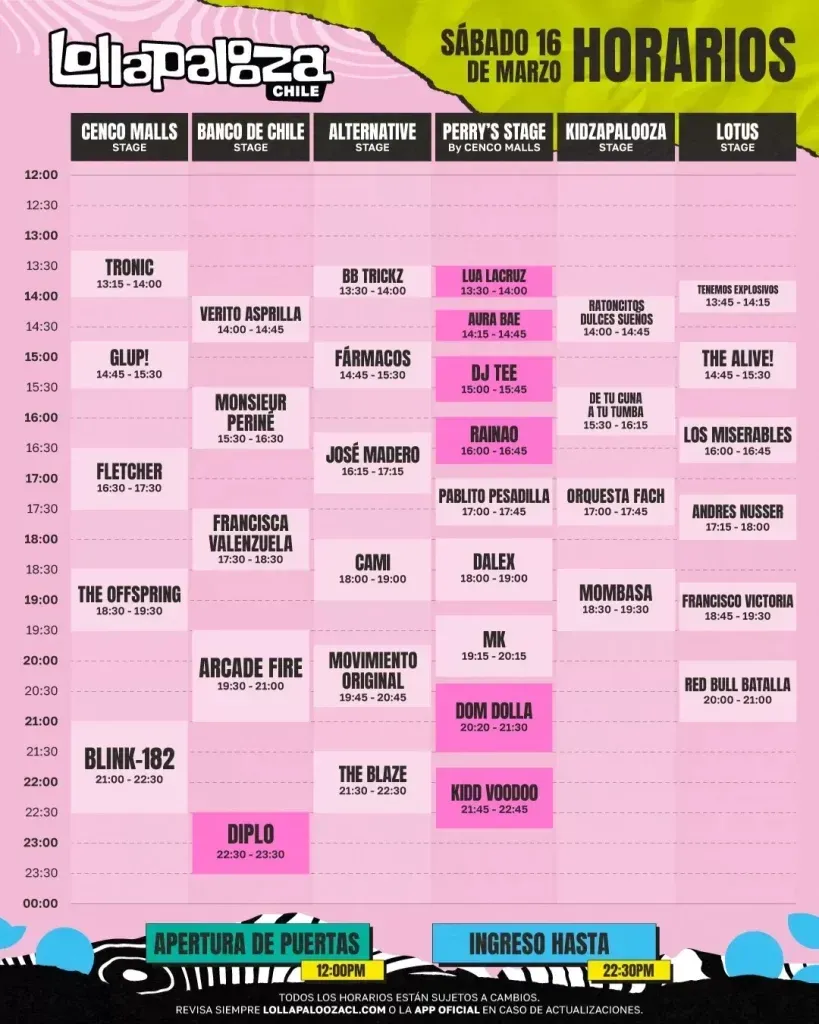 ¡Cambios en el horario de Lollapalooza Chile 2024!