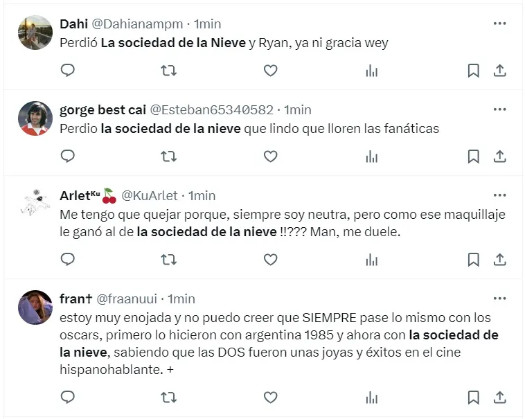 En ese contexto, una de las películas más populares de los últimos meses es “La Sociedad de la Nieve“, cinta que muchos esperaban se consagrará como la ganadora de la categoría “Mejor Película Extranjera”, sin embargo, esto no ocurrió.