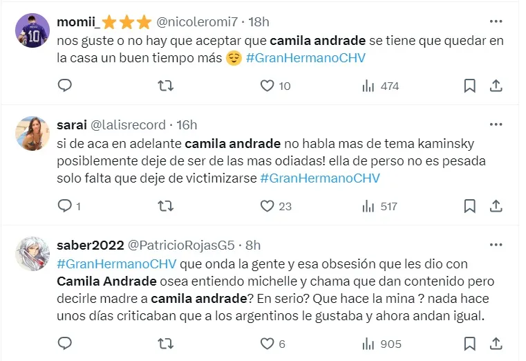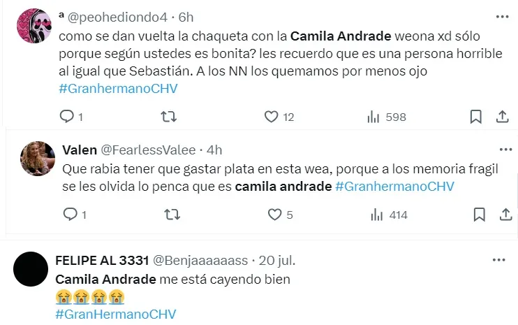 Estas situaciones han hecho que Camila este recibiendo cada vez más el apoyo de los televidentes, quienes lo expresaron así a través de X (Twitter)