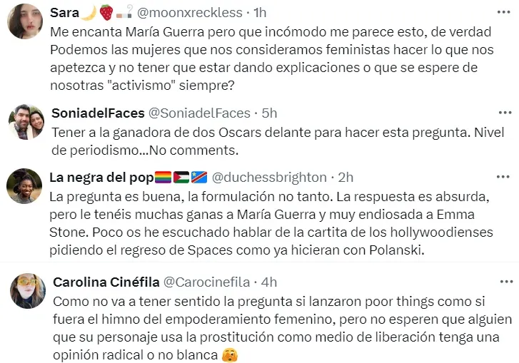 “Así que ¿cómo te sientes?. Es decir, eres una activista del feminismo mientras trabajas con Yorgos Lanthimos”.