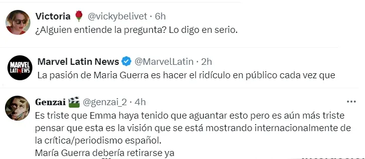 Los cibernautas inmediatamente viralizaron lo ocurrido, criticando la pregunta y felicitando a Emma por su respuesta. Sin embargo, también hubo usuarios que apoyaron a la periodista.