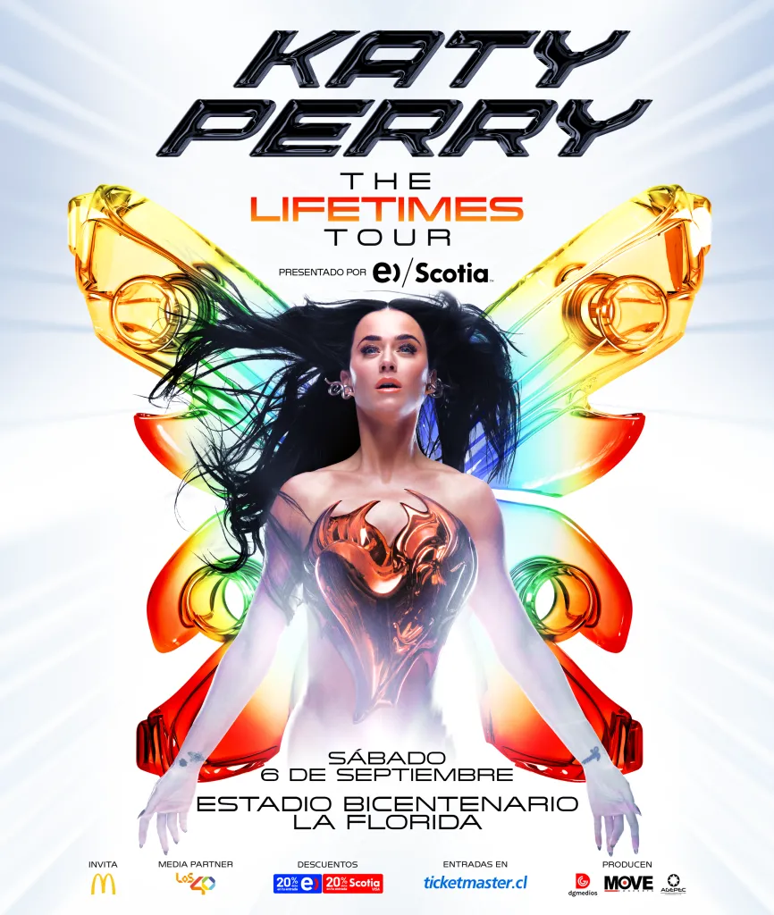 Katy Perry, una de las artistas más exitosas en ventas de todos los tiempos, regresa a Chile con The Lifetimes Tour para ofrecer un único y espectacular concierto en el Estadio Bicentenario La Florida.