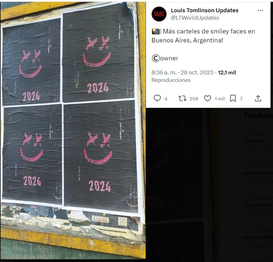 La primera pista fueron posters de Smiley Face pegados en Buenos Aires, con la fecha 2024, la que indicaría el año en que se realizaría el concierto, siendo este símbolo una referencia al ex 1D, quien en 2018 solicitó registrar la carita sonriente que consta de dos X y una pequeña línea ondulada.