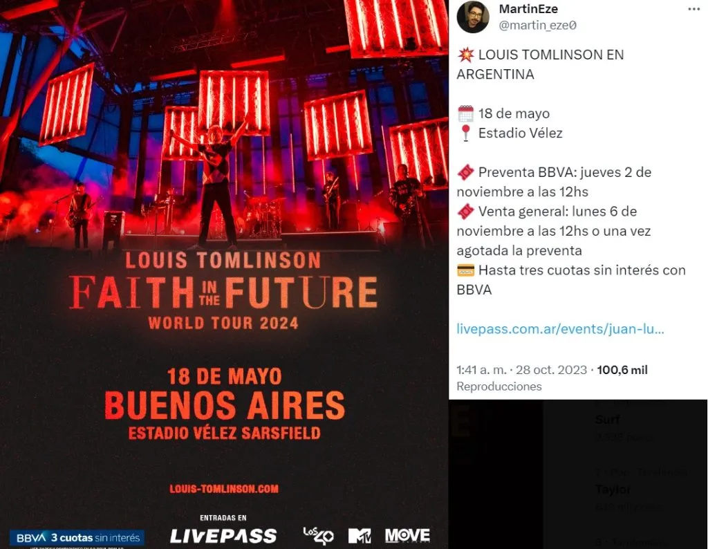 La segunda y, la más clara, fue la publicación de una cuenta de X (Twitter) en donde señalan que la página Livepass.com.ar filtró la llegada del artista para el 2024, sin embargo, habría bajado la publicación, lo que fue captado por distintos usuarios.