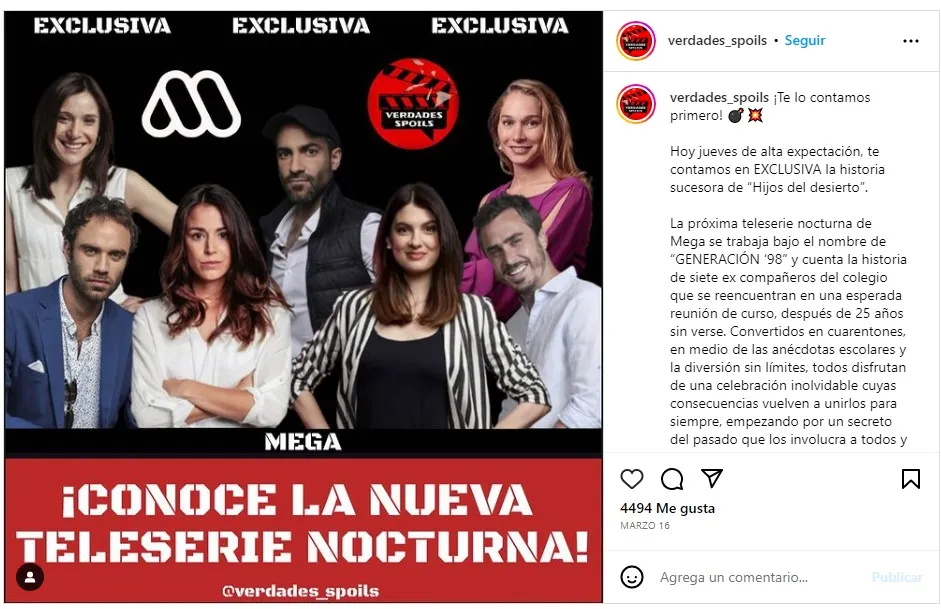 La nueva teleserie nocturna de Mega, Generación 98, anunció cuándo se estrenarán los primeros capítulos de la historia que reúne a ex compañeros de la promoción del año 98 en una fiesta que cruzará sus vidas nuevamente.