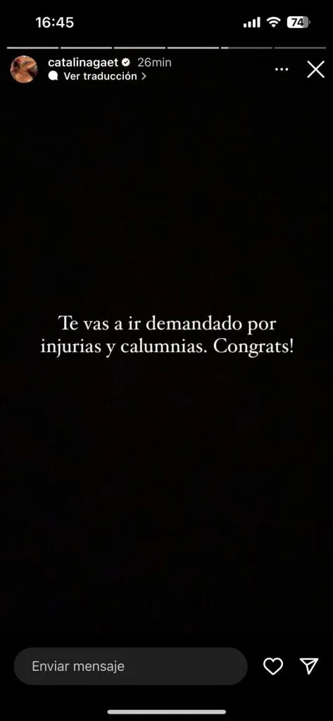 Todas las historias las finalizó con la revelación de que finalmente va a demandar a Sebastián Ramírez por injurias y calumnias.