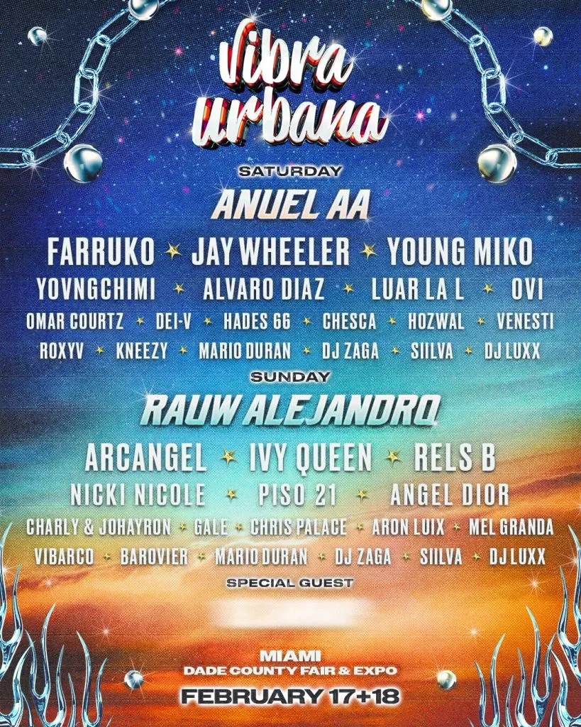 El evento comienza este fin de semana y cuenta con una gran parrilla de artistas. El sábado 17 de febrero se presentarán Anuel AA, Farruko, Jay Wheeler, Young Miko, Yovngvhimi, Alvaro Díaz, Luar la L, Ovi, Omar Courtz, Dei V, Hades 66, entre otros.