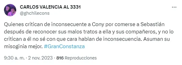 Asimismo, los televidentes destacan que Constanza es una mujer adulta que lleva 5 meses encerrada y que es normal que se meta con la misma persona debido a que no ha visto a nadie más y además no ha salido de la casa estudio para saber todo lo que se dice de ella.