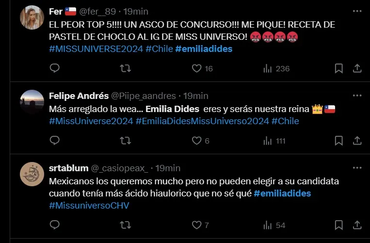 Los cibernautas en X (Ex Twitter) descargaron su sentir frente a la eliminación de la representante chilena.