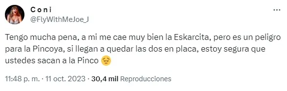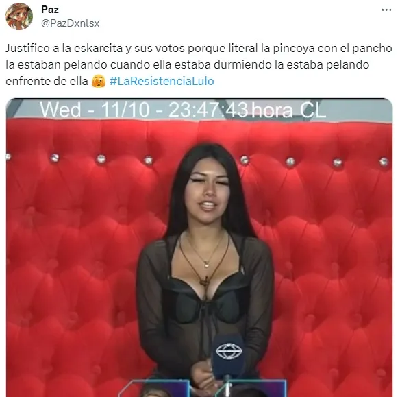 Otro tweet incluso señaló que “Para los que vengan a dar show por los votos de Eskarcita, no se olviden que hace como 10 minutos atrás la estaban pelando con ella ahí al lado“. Con eso se refieren a que durante uno de los segmentos del programa se mostró a Pincoya hablando con Pancho sobre Scarlette ahí mismo mientras ella dormía en el sillón.