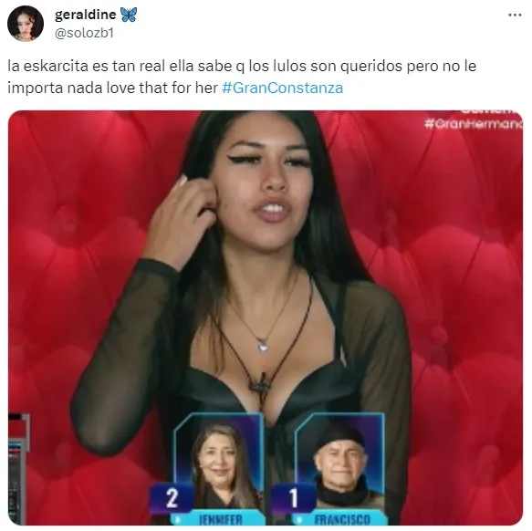 Eso si la participante por los usuarios de X, la plataforma más popular de comentaristas del programa, es catalogada como una “Reina Bella” y es que Nacha Michelson cuando aún estaba en Gran Hermano llamaba a Scarlette y Constanza sus Reinas Bellas.