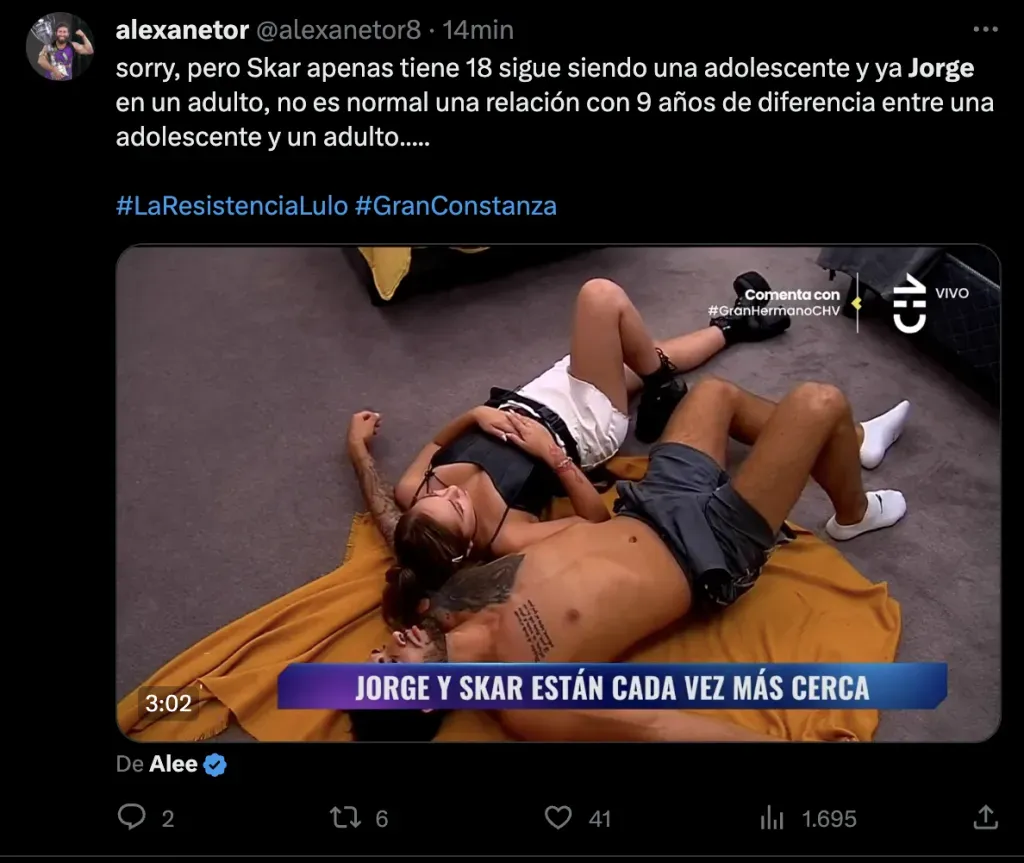Algunas personas criticaron la situación por la edad de Skarleth versus la de Jorge, mientras que varios otros subieron hartos memes por la inesperada situación que se dio en la casa de Buenos Aires.