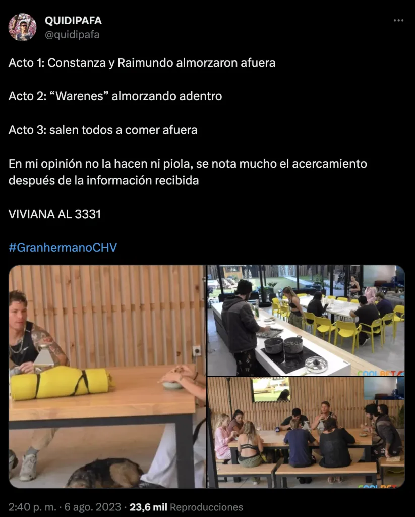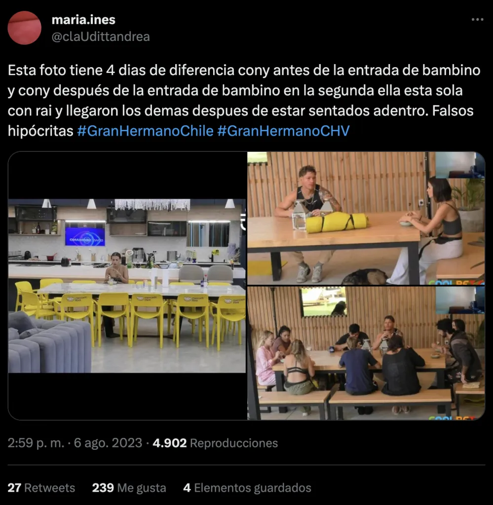 Aunque esto pudo tener que ver con la salida de Seba y la fiesta del viernes en que Coni tuvo un noble gesto con Trinidad por su cumpleaños, en redes sociales los más seguidores del programa no se creen que esto haya pasado justo en la semana que salió Lucas y además la visita de Bambino.