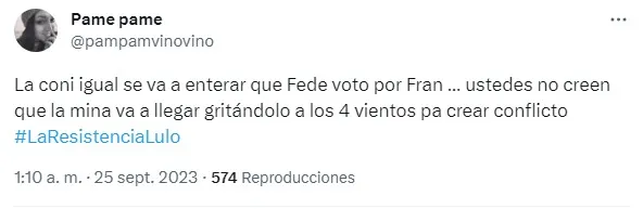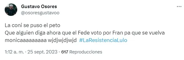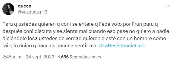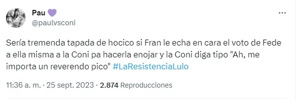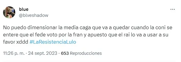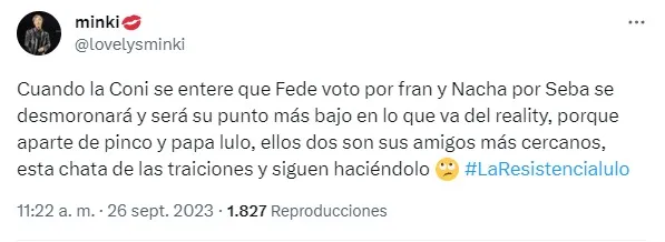 Debido a esta razón los fanáticos de Gran Hermano en X (antes Twitter) ya hacen sus predicciones sobre cuál podría ser la reacción de la bailarina cuando se entere de los votos de Fede hacía Francisca. Esto considerando que Fede y Cony mantienen una supuesta relación o un romance el que se ha formado las últimas semanas.