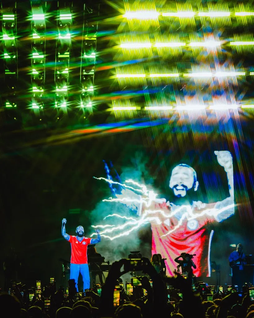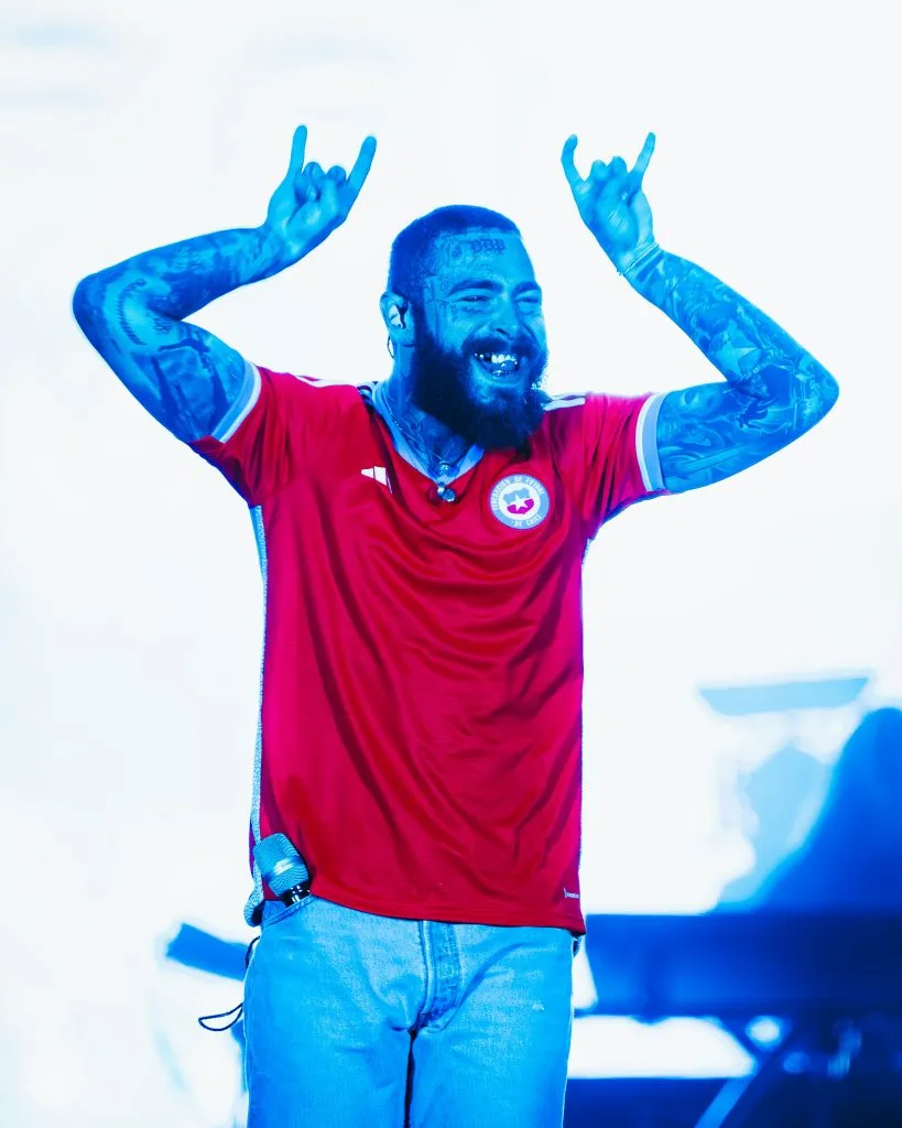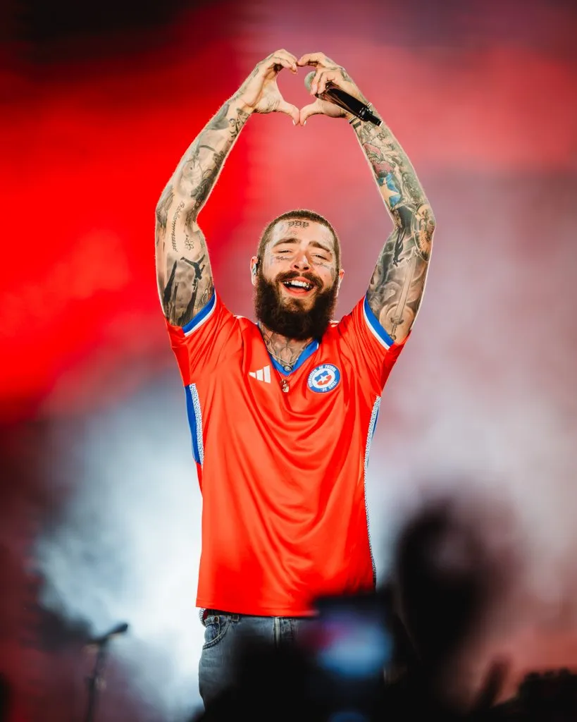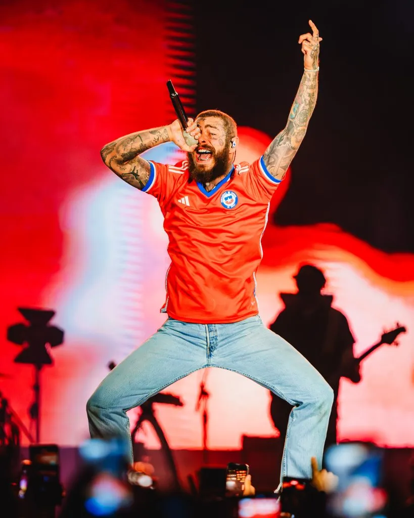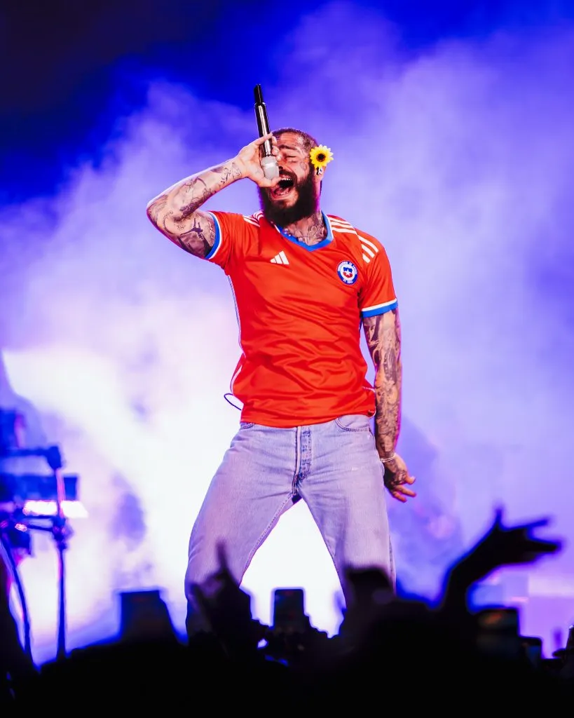 Con una camiseta de la selección chilena de futbol y su nombre “Posty” detrás, el rapero comenzó con todo con Better Now. La gente de la cancha frontal saltó con todo junto al estadounidense que de inmediato demostró toda su calidad en la escena.