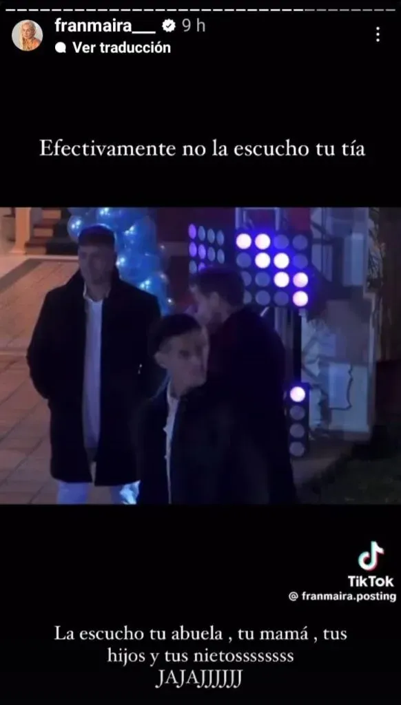 “Efectivamente, no la escuchó tu tía. La escuchó tu abuela, tu mamá, tu hijo y tus nietos JAJAJ”.