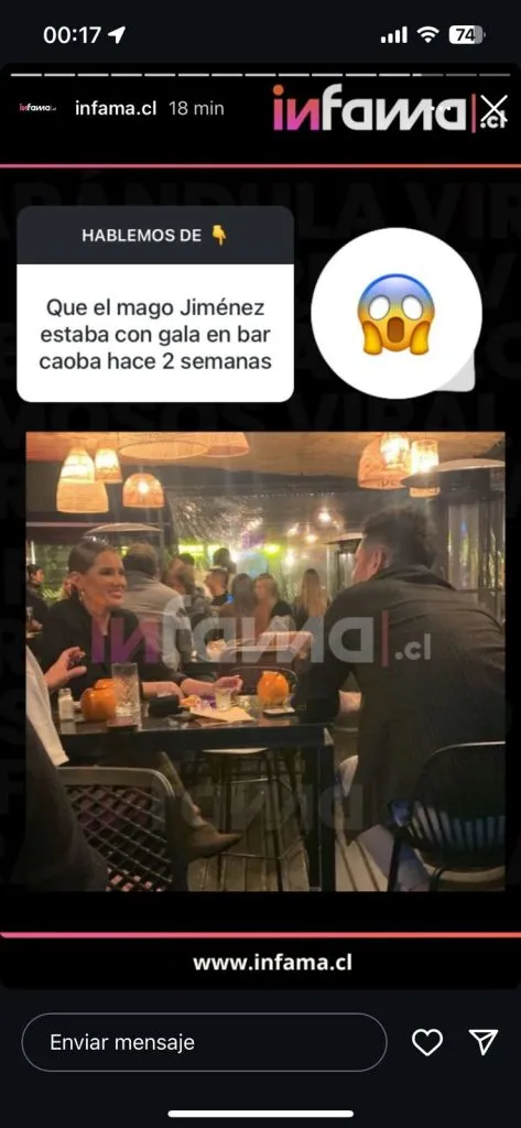 En sus historias de Instagram, la actual participante de ¿Ganar o Servir? enfrentó los rumores señalando: “Les voy a cortar el culebrón que se han armado en un momento (…) en la foto se ve claramente que ni siquiera estoy sentada en la misma mesa con él, no estoy cenando con él.