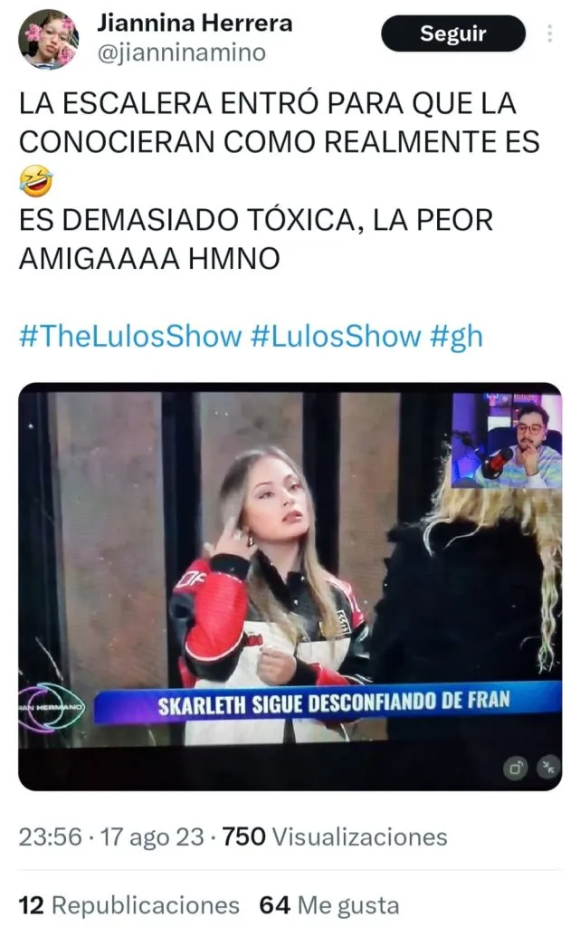 Es más los usuarios de redes sociales ya le cambiaron el nombre y así como a Francisca le pusieron Fernanda a Skarleth le dicen “Escalera” y ya se ha hecho tendencia entre los usuarios.