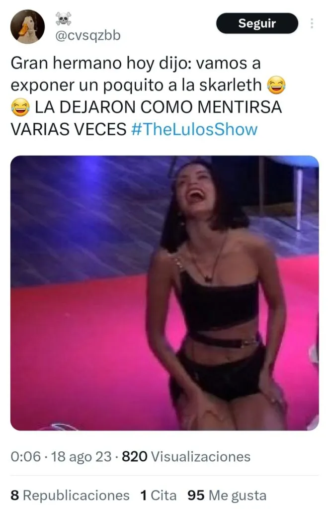 Los editores de Gran Hermano este jueves decidieron dejar en evidencia a Skarleth, participante que es considerada por los fanáticos como la nueva villana del programa de telerrealidad.