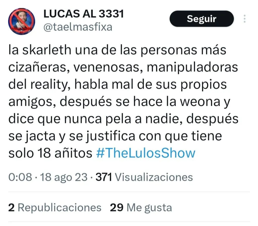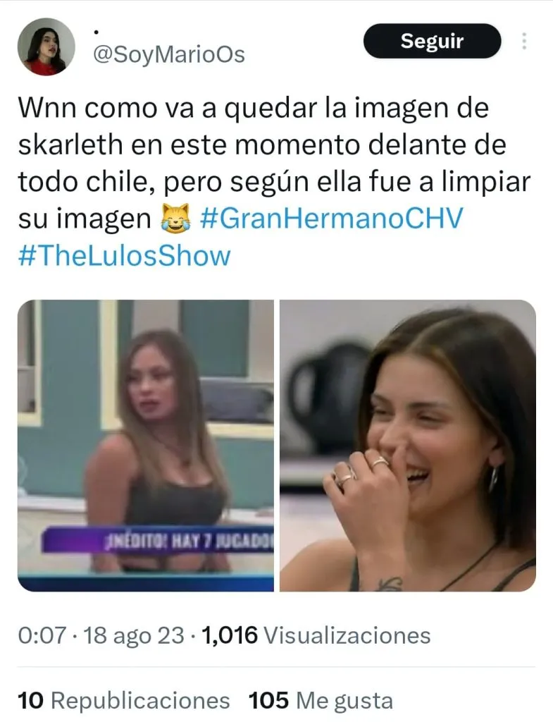 Skarleth, la ex de pailita que vino a limpiar su imagen luego del término de la relación con el cantante, ha dado qué hablar en reiteradas ocasiones en Gran Hermano Chile.