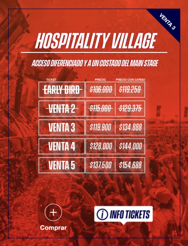 - Hospitality Village: Acceso diferenciado y a un costado del Main Stage.