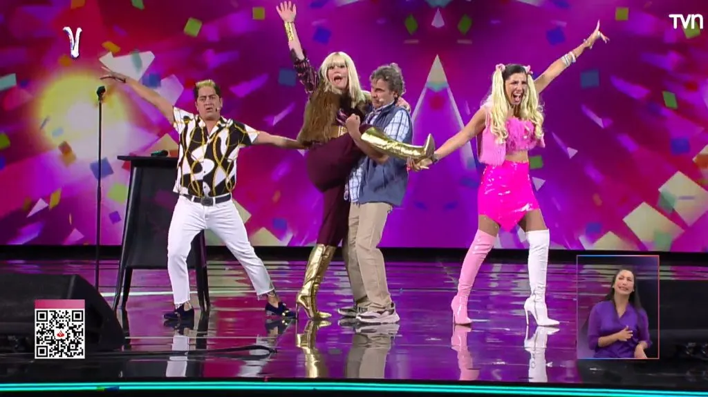 En ese momento subió al escenario su familia de Casado con Hijos, Dayana Amigo, Fernando Godoy y Fernando Larraín caracterizados como sus personajes Nacho, Titi y Tito Larraín, allí el público volvió a prender nuevamente aplaudiendo y riéndose con la rutina que tenían preparada.