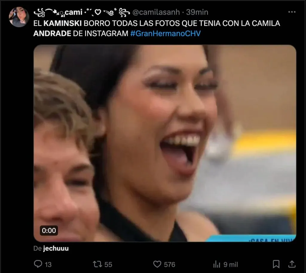 En redes sociales, algunas personas empezaron a asegurar que Francisco Kaminski borró sus fotos con Camila Andrade de Instagram y ya no se pueden ver, o bien las archivó.
