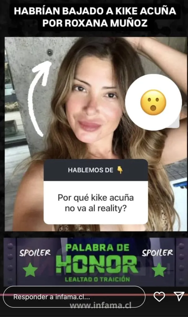 Según reveló Infama Jorge “Kike” Acuña, exfutbolista nacional y exesposo de Carla Jara estuvo entre los confirmados. Sin embargo, habrían bajado su participación en el reality por el ingreso de Roxana Muñoz, su ex pareja.