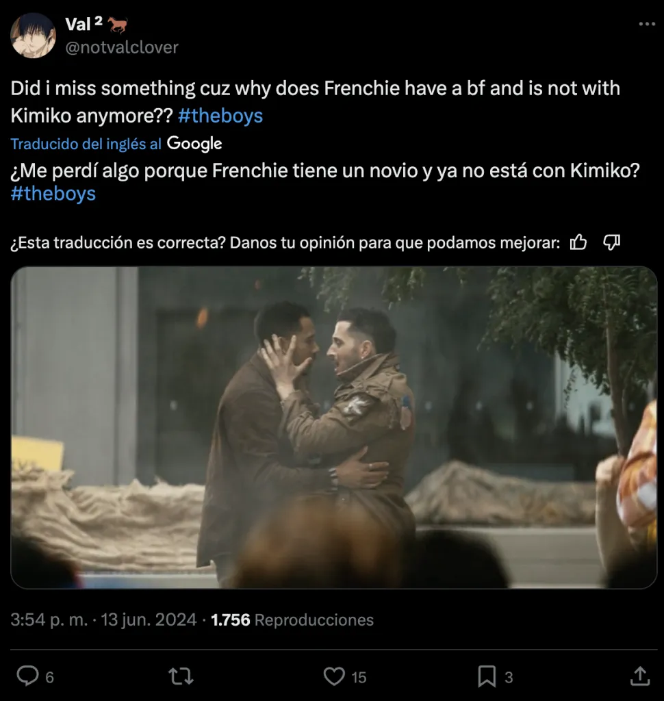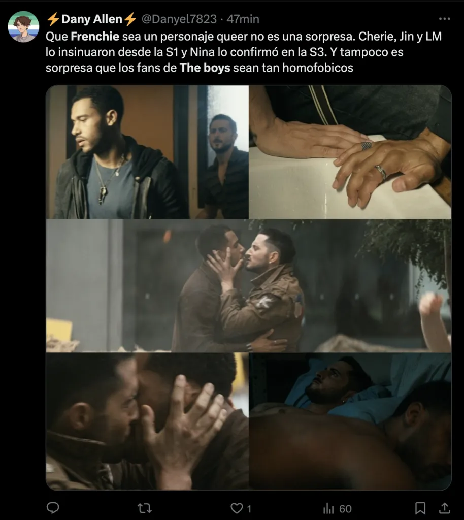 Doble sorpresa para los fanáticos, ya que primero se reveló que Frenchie es bisexual y le gusta un amigo que trabaja en la fundación de Starlight y que conoció en reuniones de narcóticos anónimos.