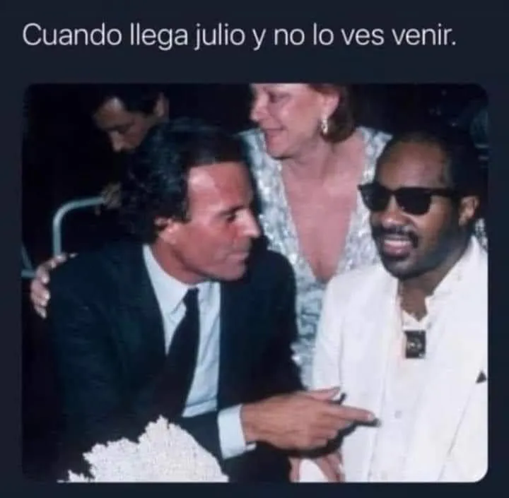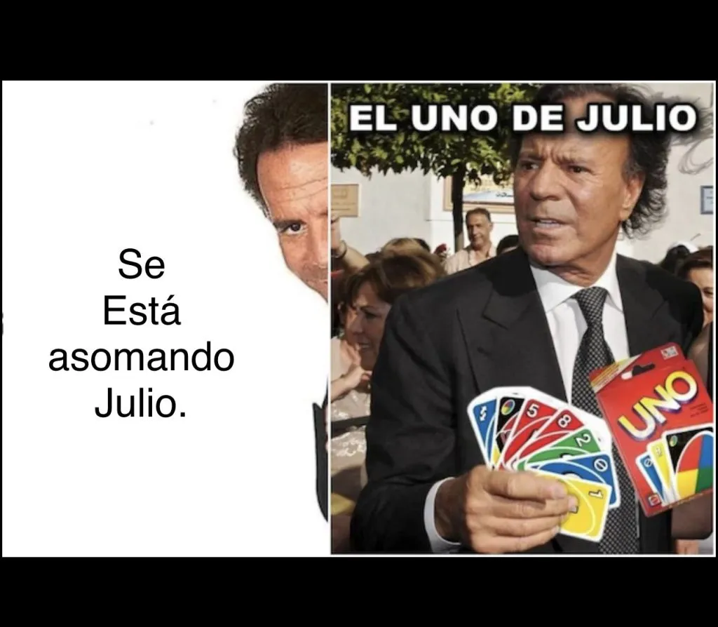 Pero, ¿por qué hay memes de Julio Iglesias en julio? Hace unos años que nació la moda de relacionar al cantante con el mes tan solo por su nombre. Y es que en redes sociales comenzaron a salir ingenuos chistes y comparaciones, con el artista español apareciendo en diferentes situaciones chistosas.