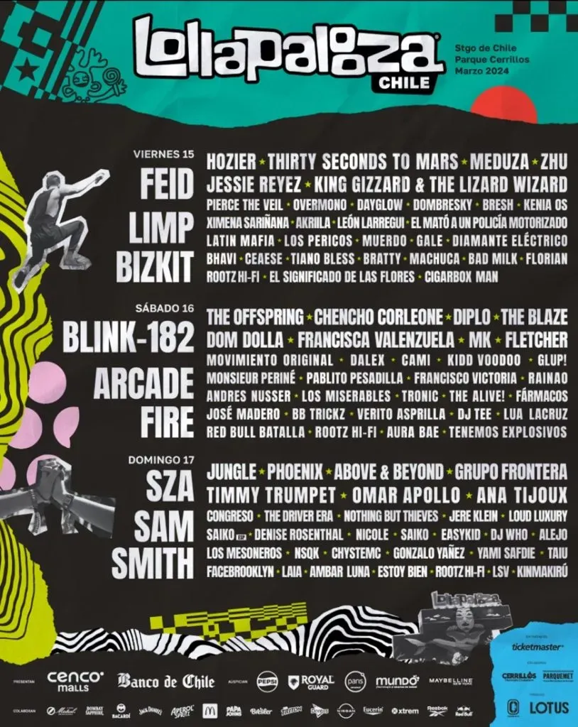 Conoce aquí los carteles del Lolla en Chile desde el 2011 en adelante. Es importante destacar que desde el 2011 y hasta el 2017 el festival se realizó en dos jornadas y posteriormente desde el 2018 comenzó a realizarse en tres jornadas completas.