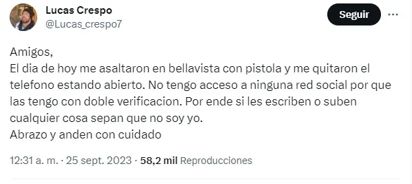 Este hecho lo dió a conocer el mismo Lucas mediante su cuenta oficial de X (antes Twitter) y es que el tiktoker mencionó que lo amenazaron con pistolas quitándole su celular entre otros objetos de valor.