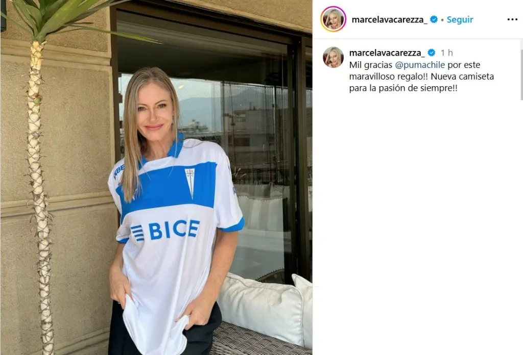 Utilizando su cuenta de Instagram, la comunicadora Marcela Vacarezza compartió un registro con la camiseta de los cruzados.