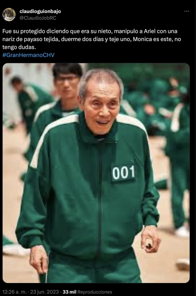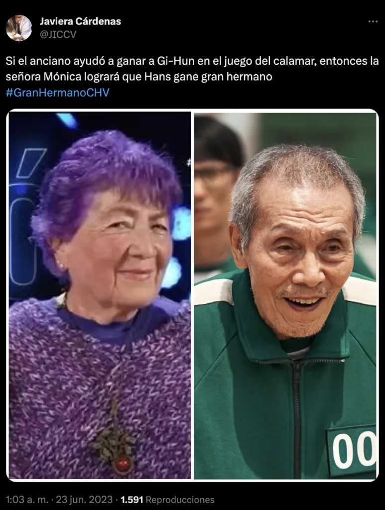 Y es que, obviamente como broma, muchos han señalado el parecido que tiene la abuelita de Gran Hermano, la señora Mónica, con el recordado personaje de El Juego del Calamar, Oh Il-nam, otro abuelito en una competencia de supervivencia en la ficción.