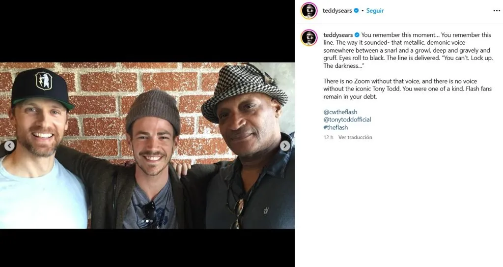 “Recuerdas este momento… Recuerdas esta línea. La forma en que sonaba: esa voz metálica y demoníaca, entre un gruñido y un rugido, profunda, grave y áspera. Los ojos se ponen negros. Dicen: “No puedes. Cierra la puerta. La oscuridad… No hay Zoom sin esa voz, y no hay voz sin el icónico Tony Todd. Eras único. Los fans de Flash siguen en deuda contigo”.