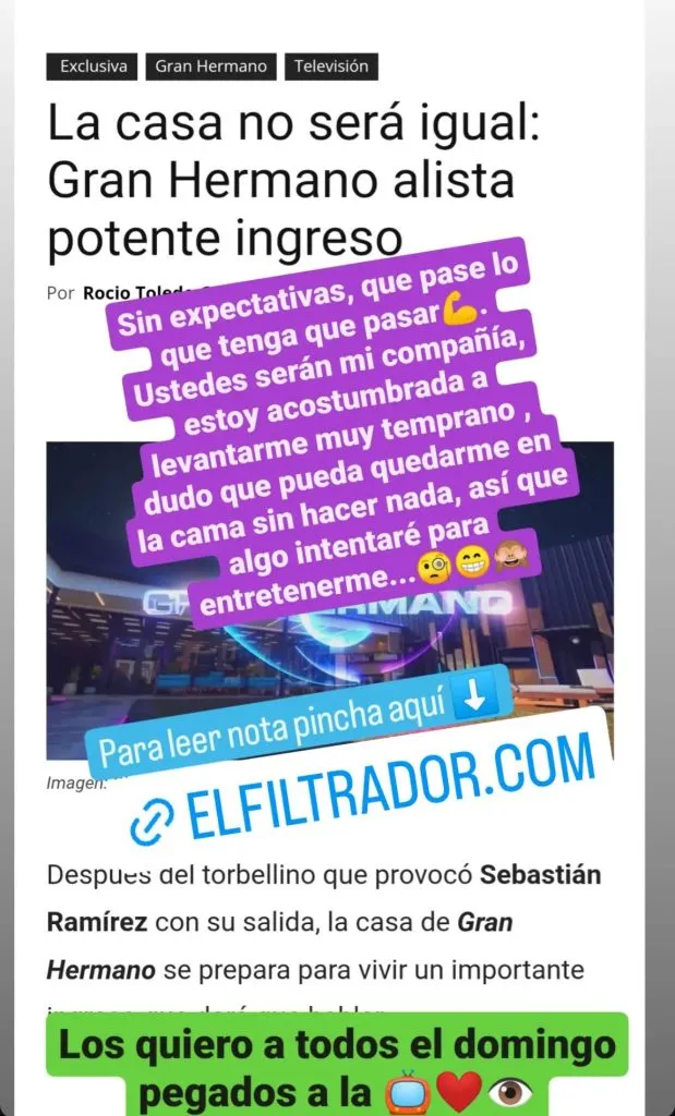 La misma, ahora fichaje de GH, había mostrado en sus redes sociales sus ganas de entrar, además de que estaba en negociaciones con Chilevisión. Lo último que subió la fierecilla de Yungay era que se estaba subiendo a un avión. ¿Destino? Argentina.