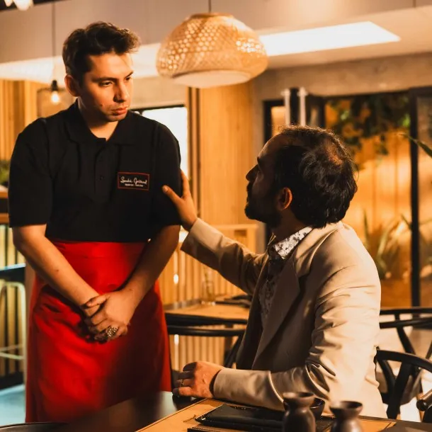 Según revelaron las primeras imágenes de su participación, el personaje de Copano será parte del equipo laboral del restaurant de sushi de Loreto (Ignacia Baeza), en donde se ve atendiendo a Hernán Olmedo (Gabriel Cañas).