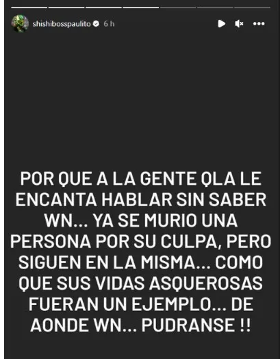 “Por qué a la gente qla le encanta hablar sin saber wn… ya se murió una persona por su culpa, pero siguen en la misma.. como que sus vidas asquerosas fueran un ejemplo (sic)”, agregó en otra publicación.