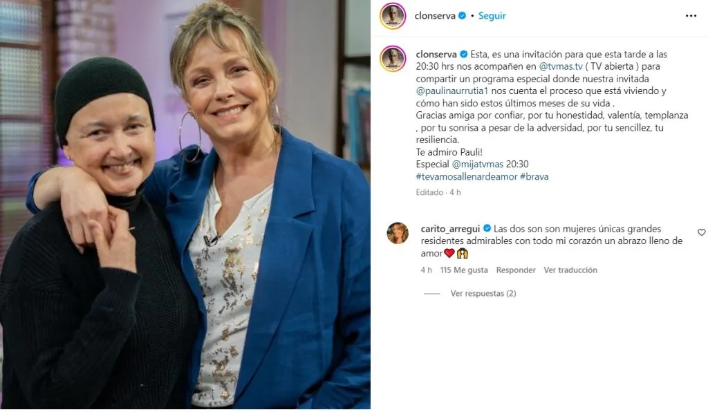 “Una brava”, comentó la hermana de Claudia y panelista de TV, Francisca Conserva. Mientras que la actriz María José Prieto escribió: “Fuerza Pauli, todo el amor y fuera para ti, estaremos para lo que necesites”.