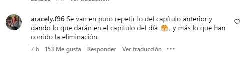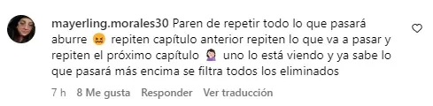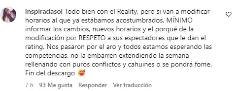 El cambio no programación no son las únicas críticas que le han llegado al programa ya que otras de las que más se repiten entre los usuarios de Instagram, que es donde más público se concentra que ve el reality, es que el programa está durando cada vez menos, tiene mucho comercial y que los resúmenes del capítulo anterior más el adelanto del siguiente capítulo usan más tiempo que el capítulo en sí.