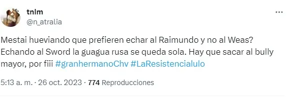 Y es que una gran parte del público ya hace campaña para eliminar a Raimundo con las típicas lulotones para juntar fondos para mandar votos durante estos días.