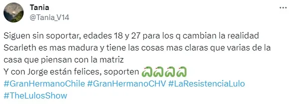 Esto porque Skarleth un par de días o semanas antes de ingresar a Gran Hermano cumplió 18 años mientras que Jorge tiene 27 años. Además se destaca que ambos participantes se encuentran en distintas etapas de su vida por la misma diferencia de edad.
