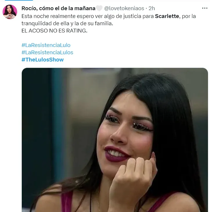 Por su parte, al ser consultada por la decisión, Scarlette señaló: “Mi intención nunca fue ensuciar la imagen de alguien y mucho menos enlodar el programa, a muchas mujeres les ha pasado que nos hemos sentido así de incómodas y pasadas a llevar”.