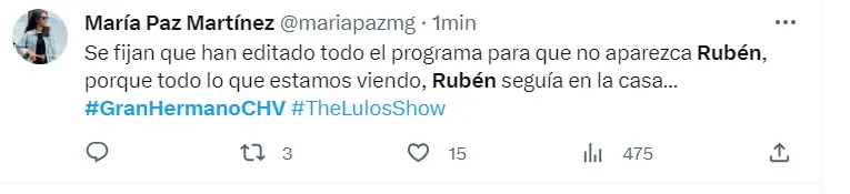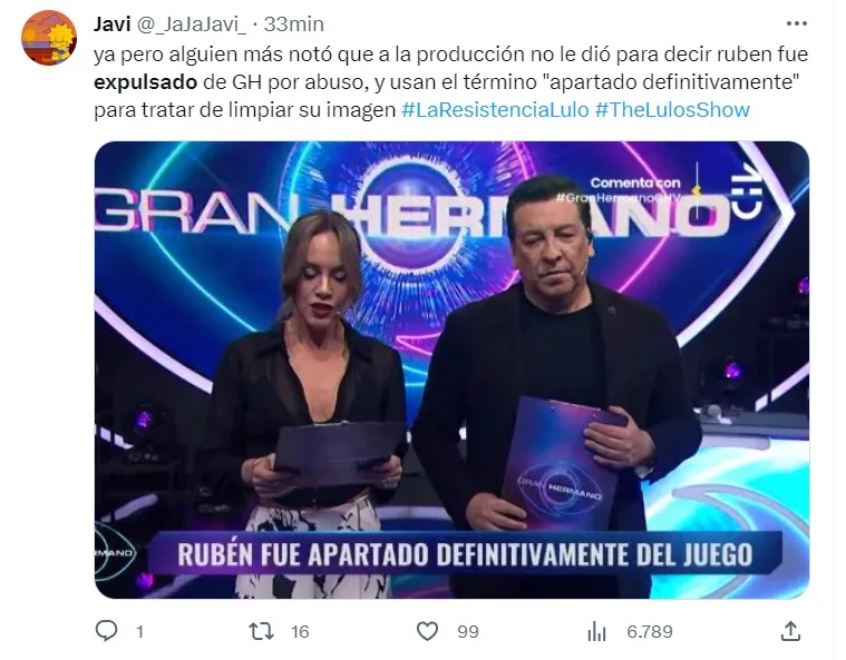 Por su parte, los televidentes rápidamente se manifestaron a través de las redes sociales para expresar su opinión respecto a la decisión de expulsar a Rubén de la competencia.