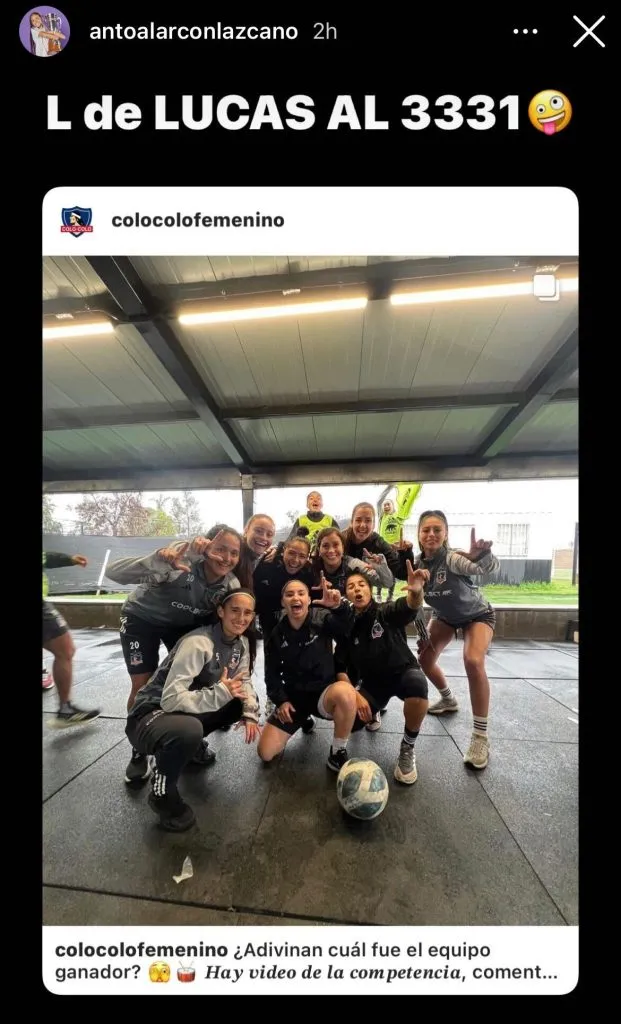 Pero su apoyo a los lulos no fue lo único que demostró el plantel colocolino. Una de sus jugadoras, Antonia Alarcón, subió una foto con el grupo haciendo una L y diciendo que era “L de Lucas al 3331”.