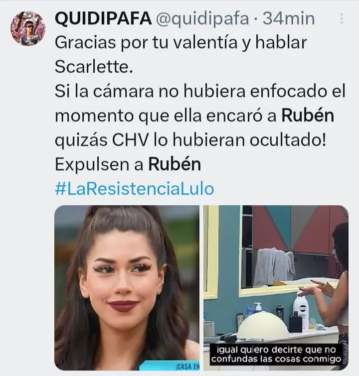 “Puedo ser muy buena onda, bailar y todo, pero de ahí a tocarme durmiendo…”. Tras esto, la producción emitió un comunicado que revela la suspensión de Rubén hasta que se esclarezcan los hechos.